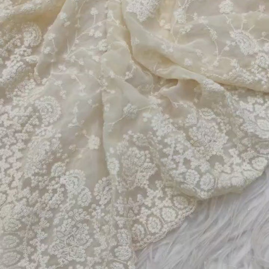 Cream Soft Organza Embroidery Thread Work Saree