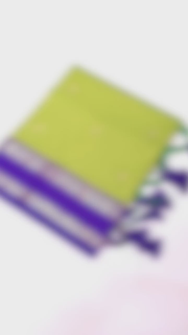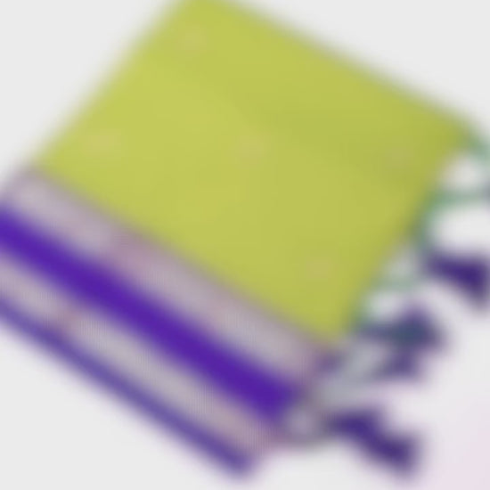 Grace in Every Weave – The Timeless Elegance of Gadwal ! Drape yourself in tradition with this vibrant Gadwal Pattu saree, featuring a stunning contrast of royal purple and parrot green, adorned with rich golden zari work.