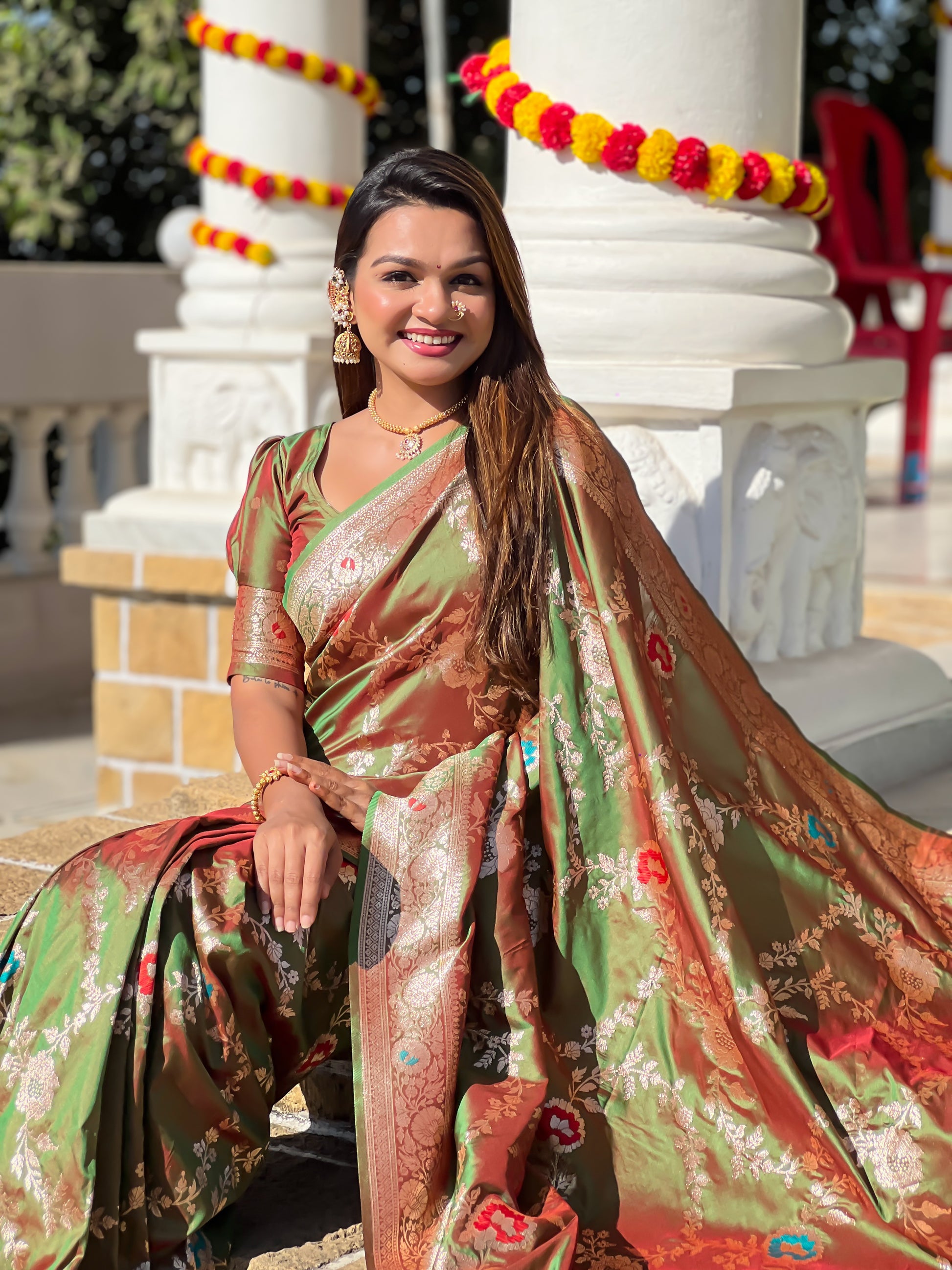 Mehendi Banarasi Silk Saree with Intricate Zari Work