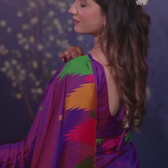 Purple Temple Border Silk Saree