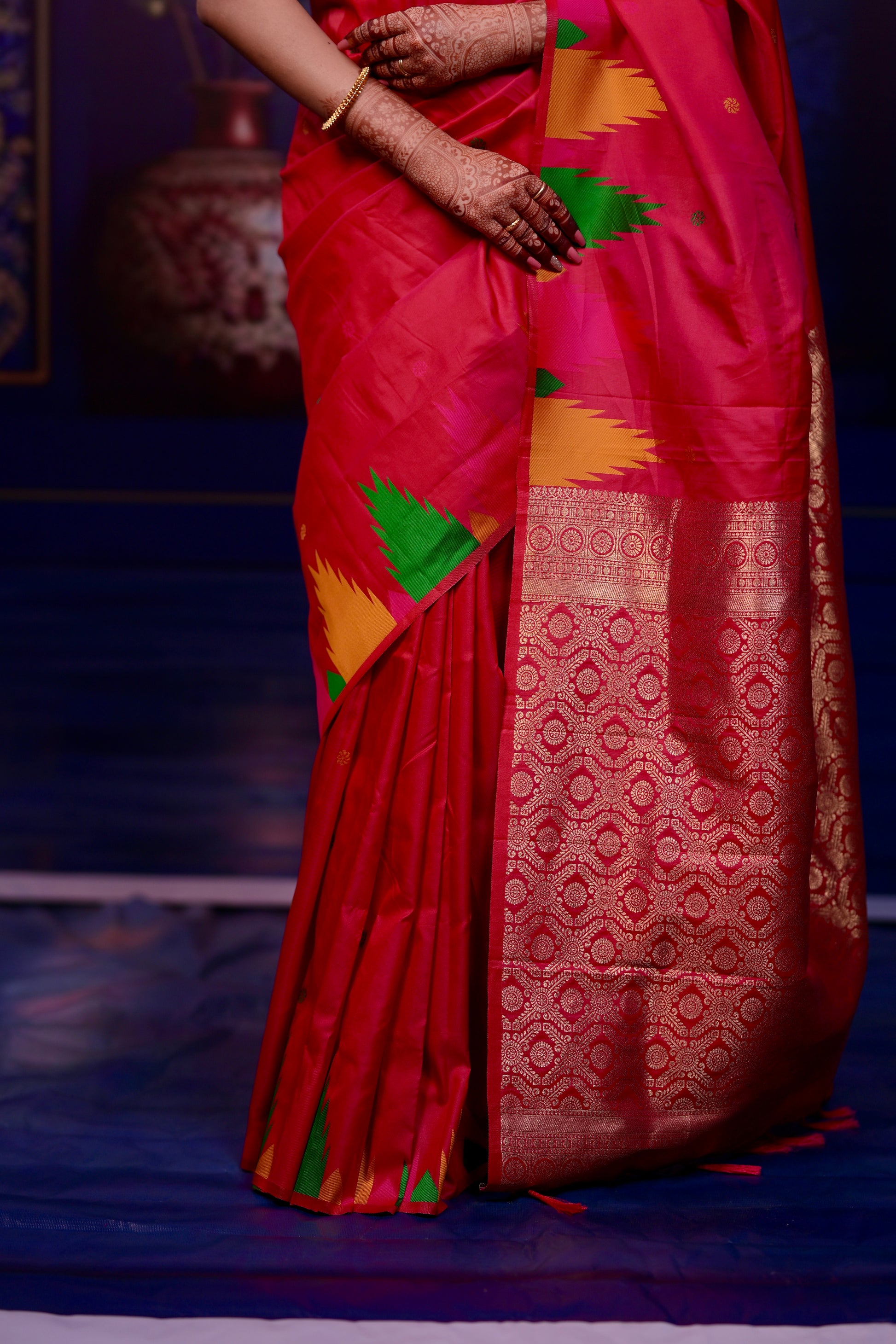 Drape yourself in elegance with this exquisite Silk Saree, a graceful blend of tradition and refined artistry. Crafted from premium silk, this saree features a luxurious body adorned with vibrant multicolor motifs and finished with a beautifully woven traditional zari border that adds a regal charm. The rich brocade pallu further enhances its grandeur, making it a statement piece for every special occasion.