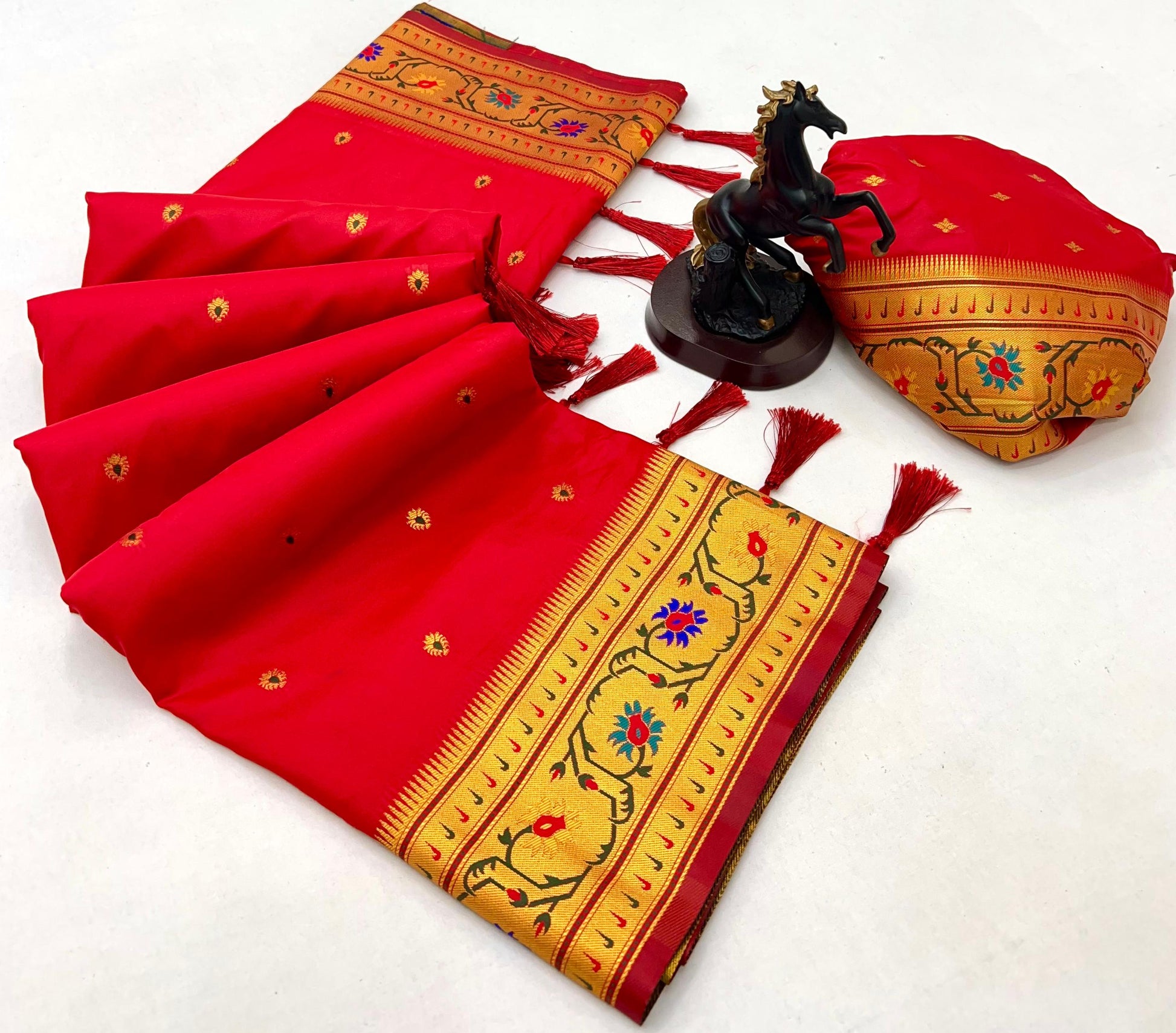 Red Brocket Border Soft Silk Paithani