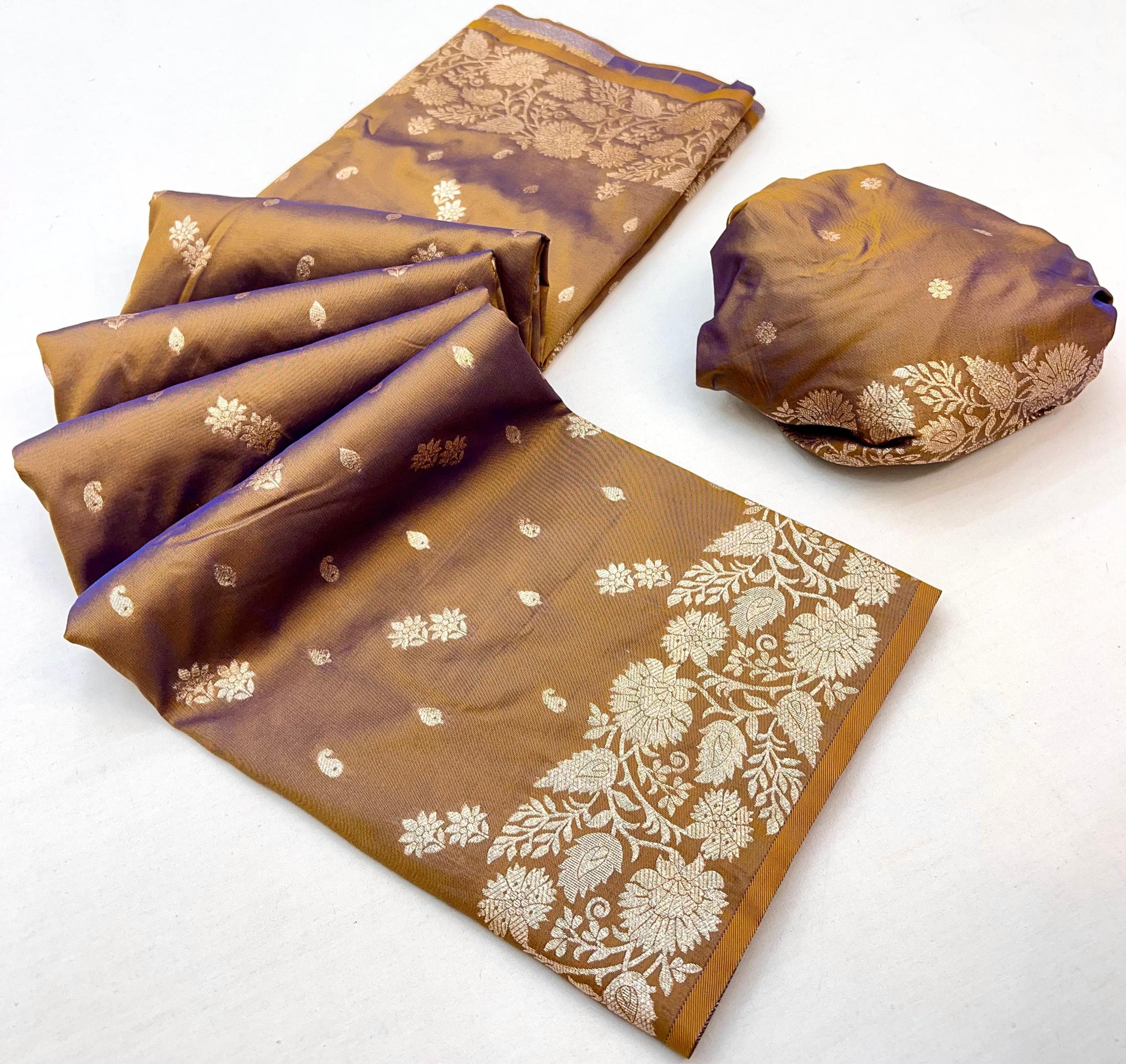 Rich Coffee Elegant Two-Tone Banarasi Silk Saree