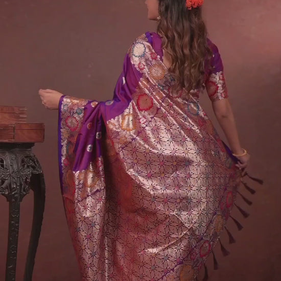 Rich purple Banarasi Silk Saree