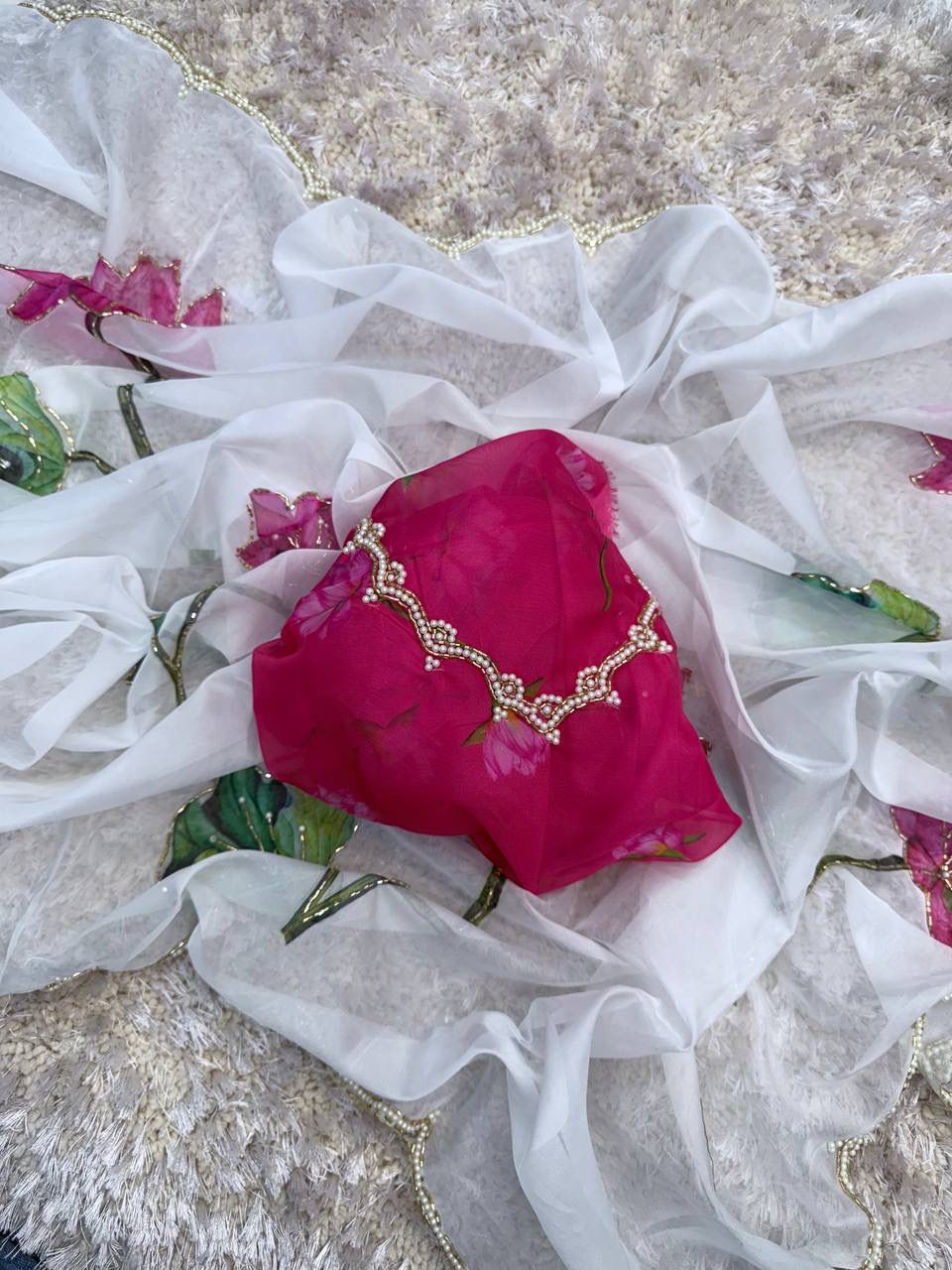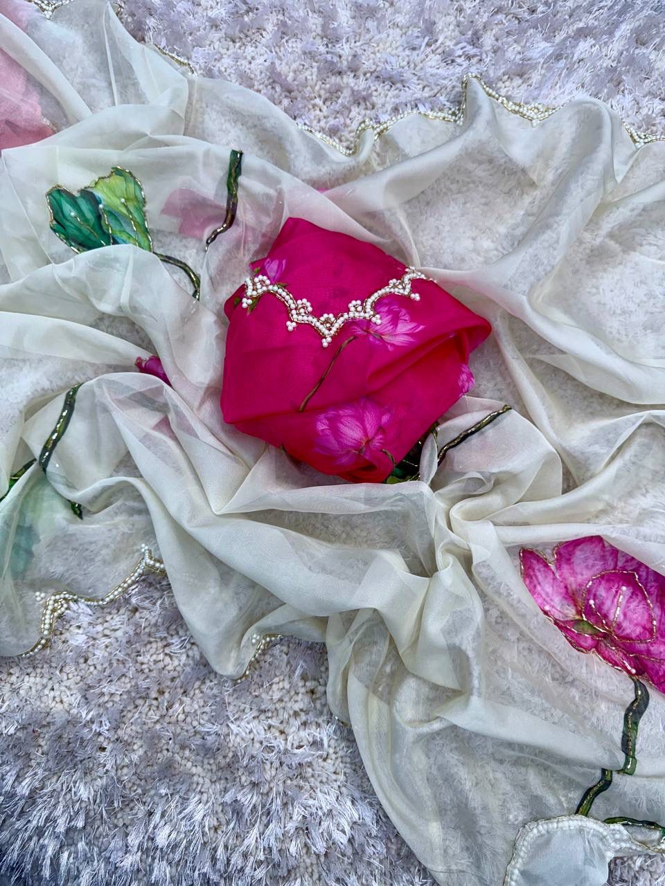 White Soft Tabby Organza with Digital Print and Khatli Work Saree
